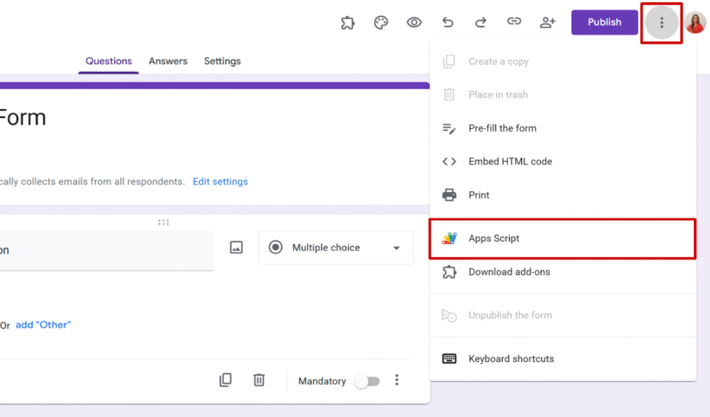 In my experience, many people aren’t aware that you can actually embed an Apps Script project directly into a Google Forms.